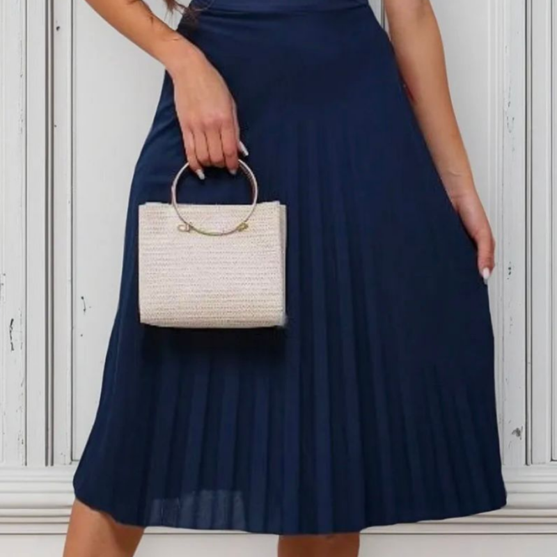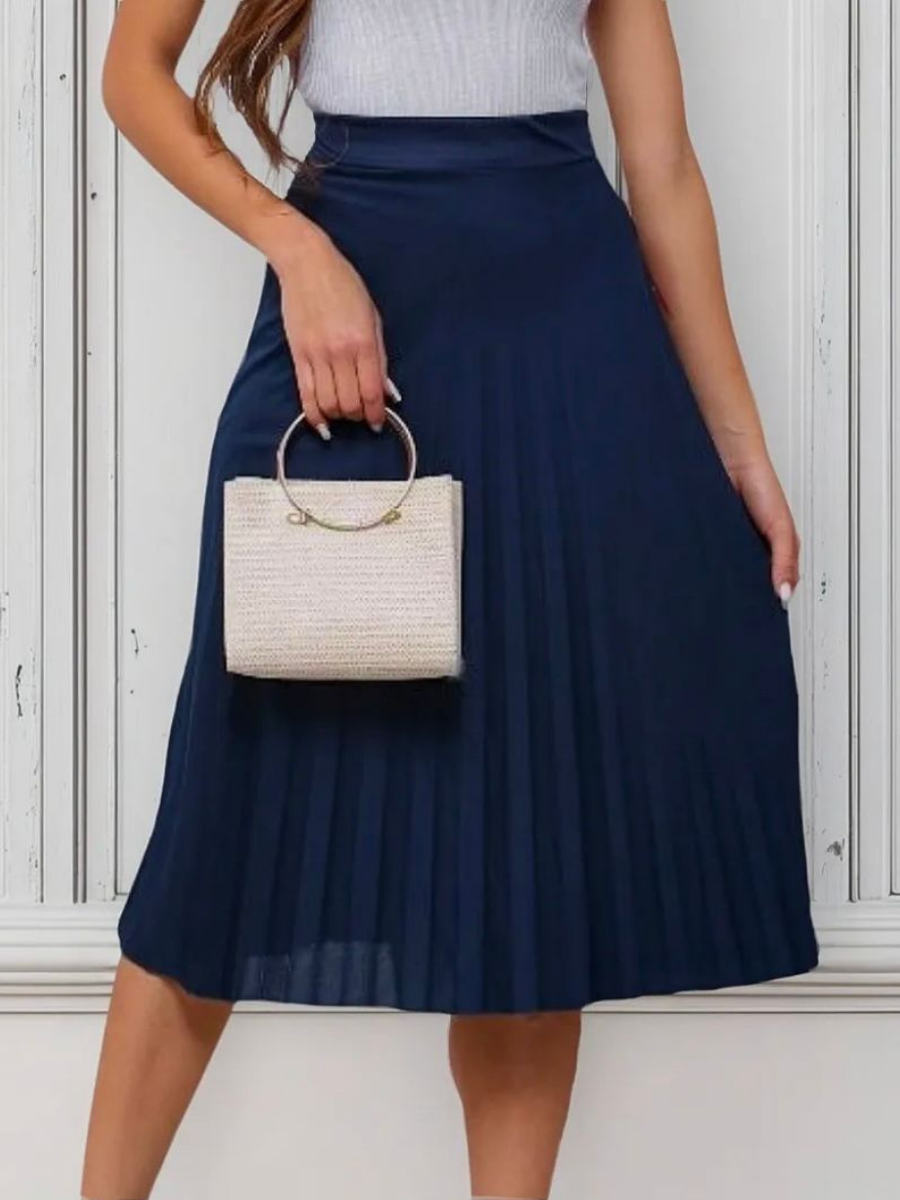 Saia plissada Midi Moda Evangélica com forro e elástico na cintura