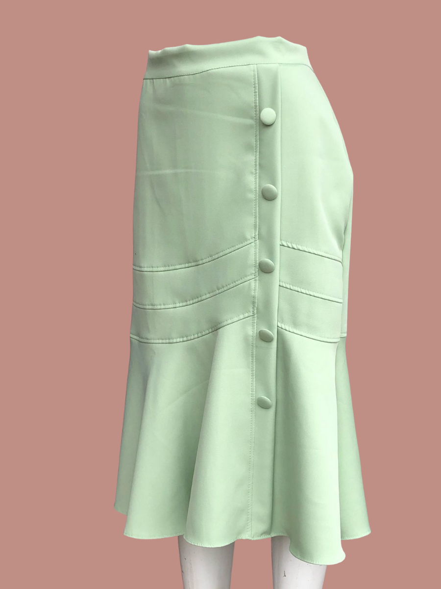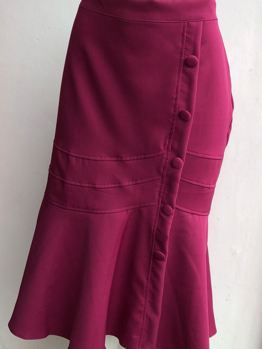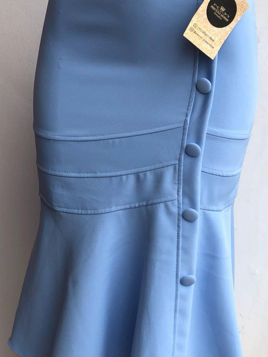 Projetada com uma modelagem sereia, a saia se ajusta suavemente ao corpo, destacando sua silhueta de maneira charmosa. Seu acabamento com botões adiciona um toque clássico ao design contemporâneo, enquanto a cor bege facilita combinações com diferentes estilos e paletas de cores. Além disso, o tecido leve e de alta qualidade garante o conforto ao longo do dia, sendo ideal tanto para ambientes formais quanto casuais.