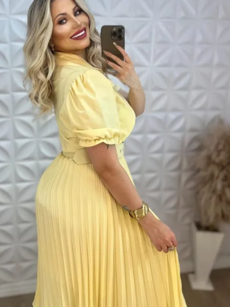 Com manga curta princesa e elástico, o modelo proporciona um caimento perfeito, permitindo liberdade de movimento e conforto. O detalhe plissado traz um charme especial, tornando-o ideal para diversas ocasiões, desde um evento mais formal até um encontro casual.