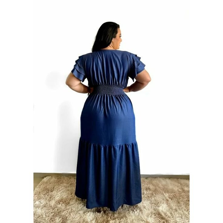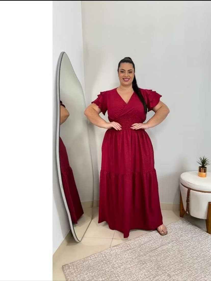 Costas com 100% coberta. Possui manga com 3 babados.. É possível a utilização de sutiã mais decotado. Possui lastex na cintura para melhor ajuste no corpo.