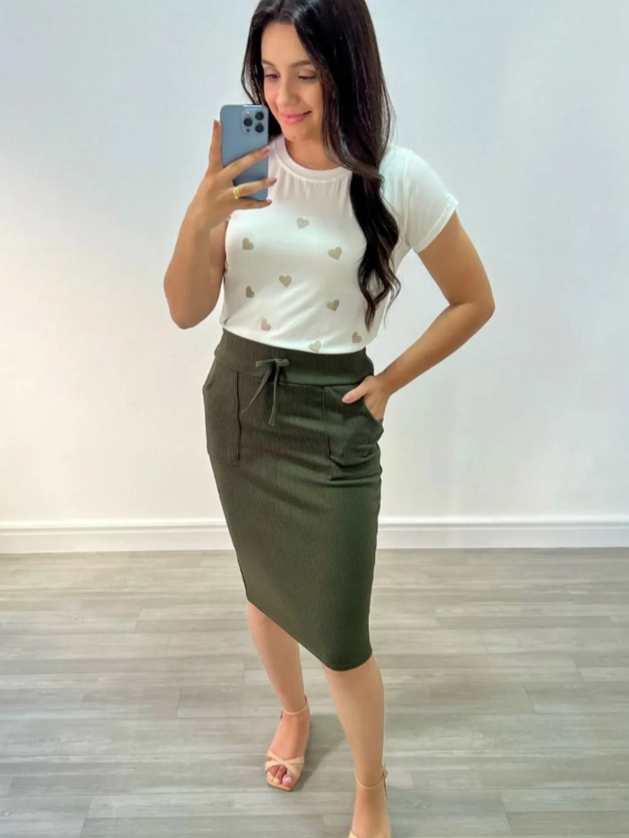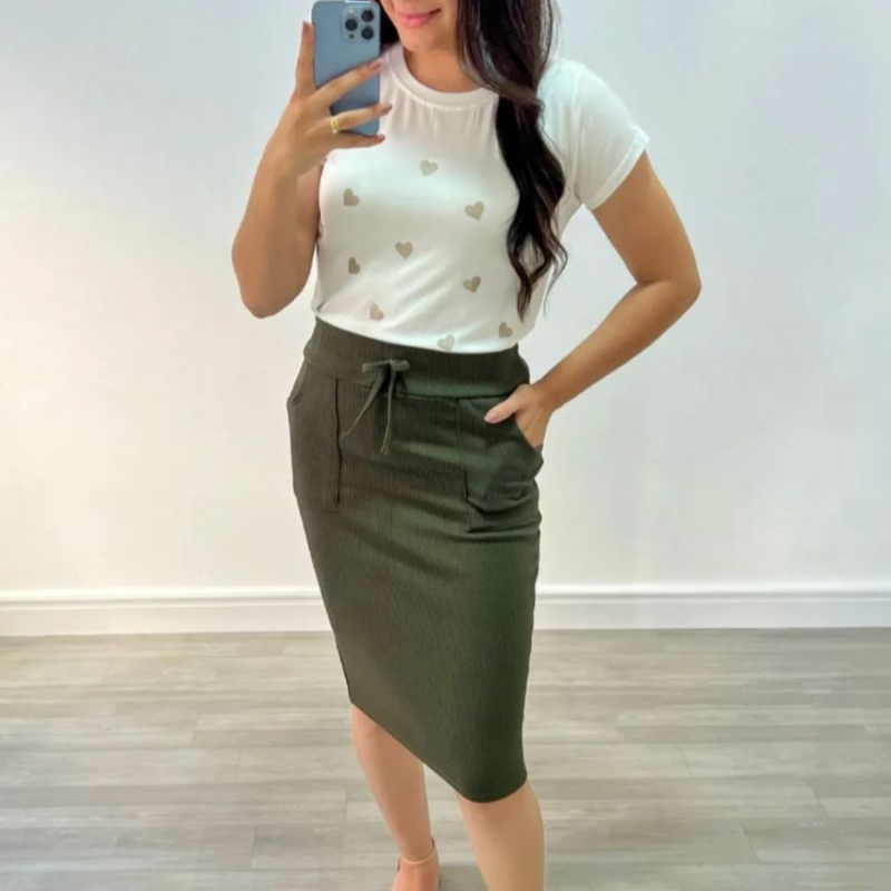 Saia Casual Anarruga (Verde Militar)