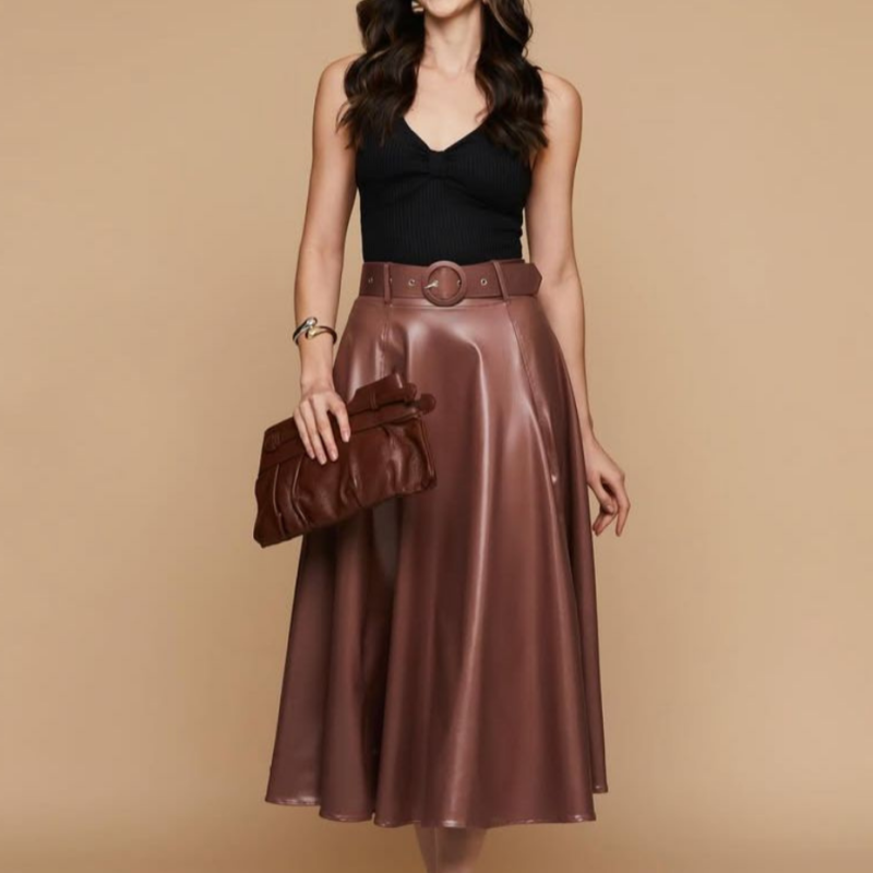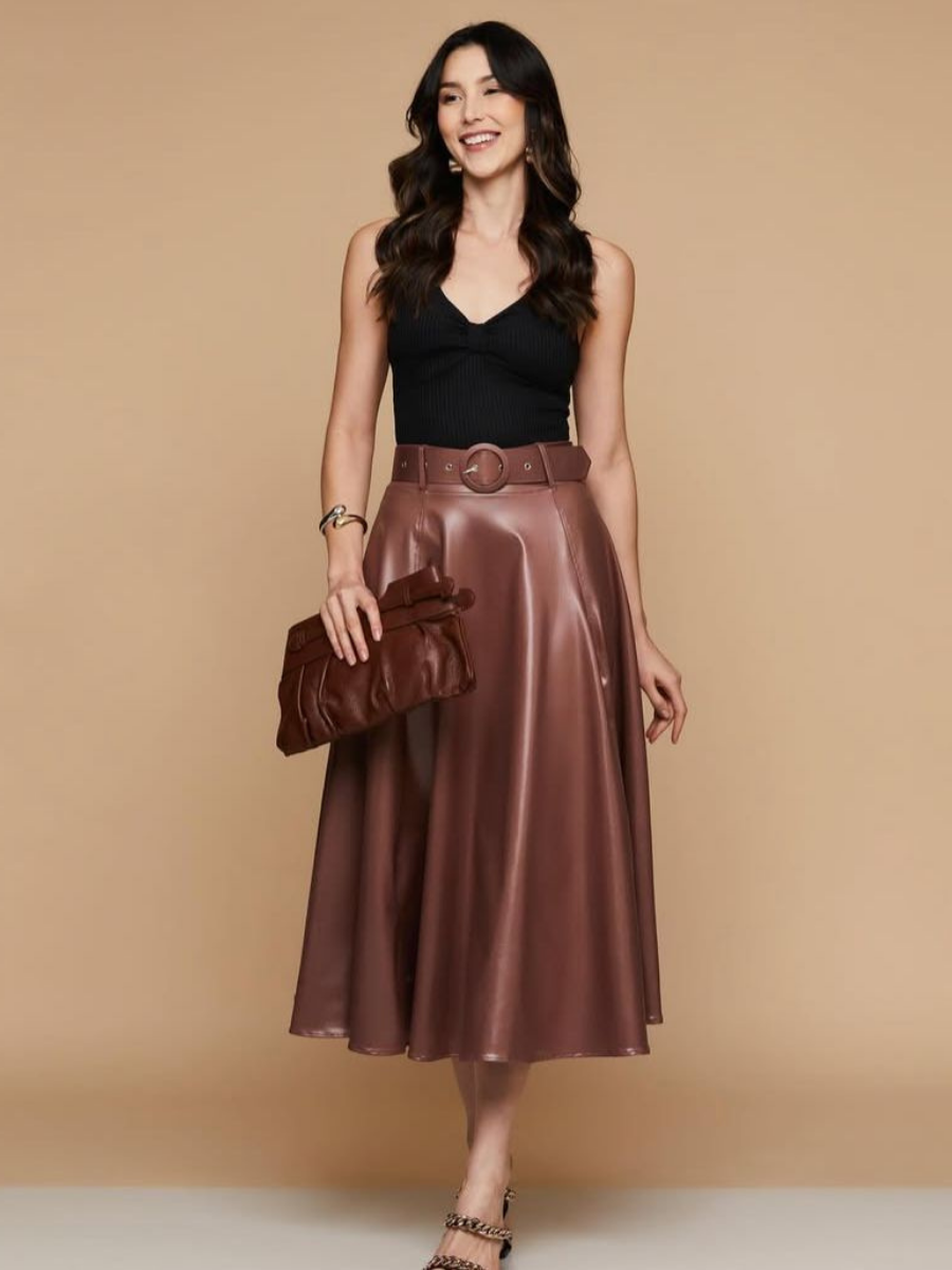 Saia Cirre Fit e Flare Com Cinto Longuete