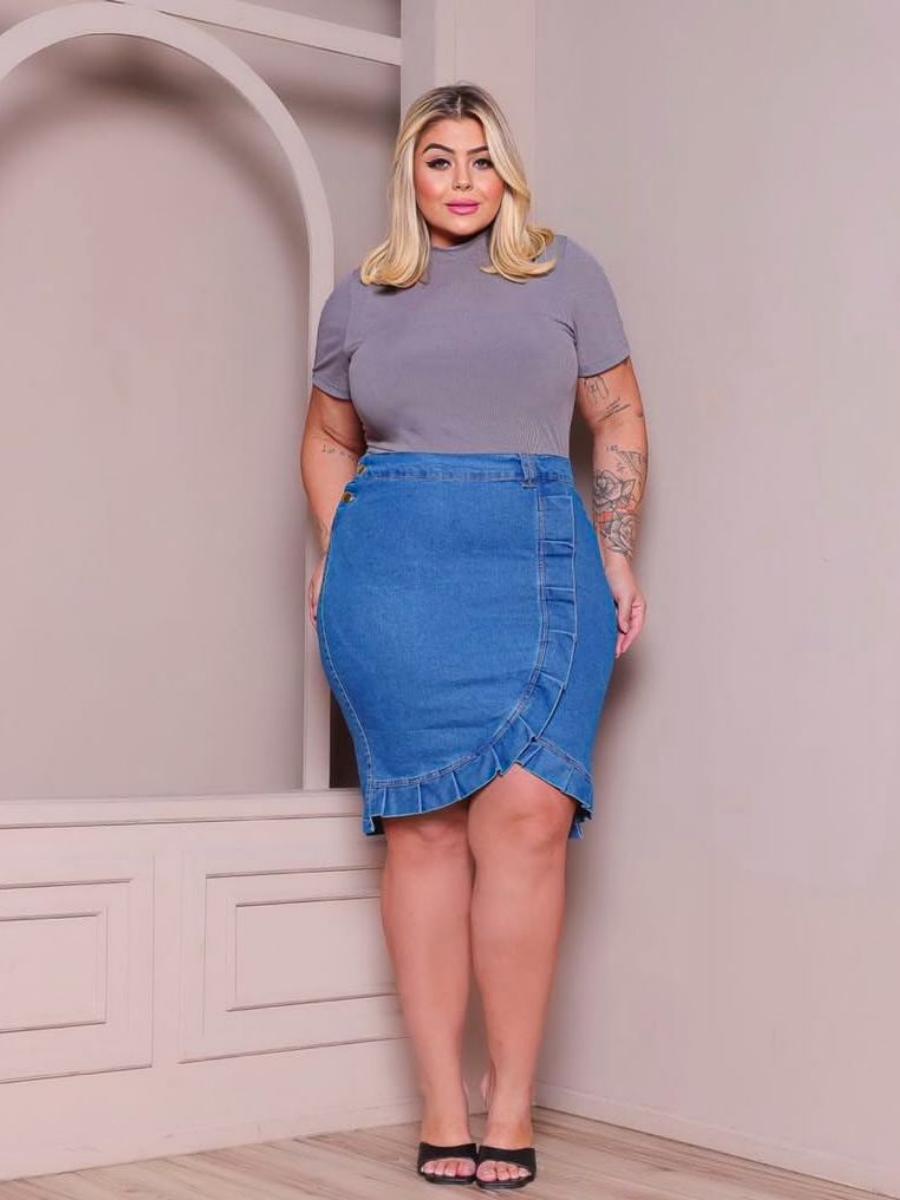 Saia Feminina Alfaiataria Midi Babado Três Marias com Laço